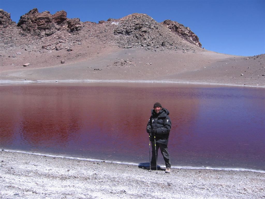 One gem after another...We left the realm of Licancabur's emerald to enter that of Aguas Calientes' ruby exactly one week after. Where Licancabur is a mystical and sacred mountain, we were to discover that Aguas Calientes had some sort of magic to it, sometimes a little too facetious for our own taste: Porters disappeared for hours at a time and reappeared literally out of nowhere; they were inspired to make strange decisions on their own, which kept us stranded for 36 hours, radios did not work, equipment vanished and resurfaced...It was as if the mountain was telling us "you want a piece of me, then show me what you got first!".