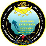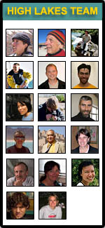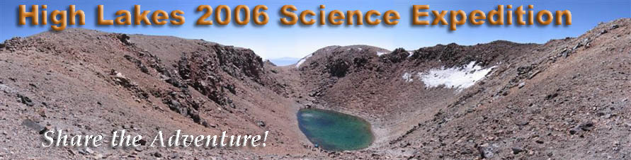The sounds coming from the shore are not very encouraging...Apparently, Cristian and Victor have some trouble with the bathymetry boat. We had to switch to our back-up unit just before leaving the refuge because of a bad motor on the main unit we used to map Licancabur's lake. The other boat is a different design. Victor, Clay, and Cristian installed the GPS, sonar, and thermal mapper on it at the refuge and tested it...in Laguna Blanca. Everything seemed fine there. The problem is that the lake in Aguas Calientes is apparently fresh water whereas Laguna Blanca is significantly salty. Cristian and Victor are now dealing with not only a weak remote but also a boat taking water, slightly sinking. There is nothing we can do, except maybe smile as far as I am concerned...We almost did not make it up to here so this is not the probable highest altitude sinking of a boat that is going to change my mood today! They finally give up. We won't know the depth of the lake this year. That will have to wait. They pack the wet unit. In the meantime, Matthieu is completing his limnological work. By 2:00 pm we are done with the science, as we had planned. I am taking another reading for the UV, which still refuses to go down...Then we pack, clean our equipment, and by 2:30 pm we are back on the summit rim, ready to start our descent after a few last photos.